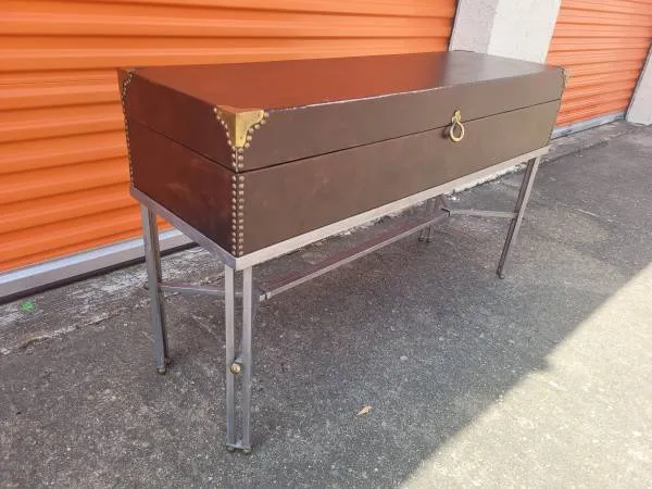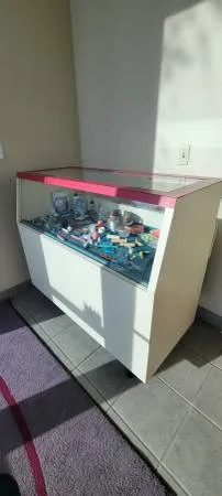 Fun Display case you can leave as is or make it your own with paint or peel & stick wallpaper. Glass in front and top. Opens in the back with decent storage on the back bottom part. My favorite thing about this case is that it has good wheels that will also lock in place. Makes for moving to events a breeze. Great for taking to a craft show, trade show or for your business. Size is 48wide x 42Tall x 22 deep. $100 Cash only. If interested please provide an email address or cell number to answer any questions or schedule a viewing. Thanks!