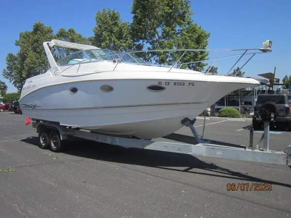 Lots of room in this 290 with a 10 beam Full galley with refer, a 2 burner cook top and microwave. Over size V berth and mid cabin berths. Full electric head Camper canvas enclosure with cockpit cover. Remote control spotlight, TV/CD/VCR, CD changer Twin Volvo 5.0 engines with Duo prop drives Windlass, anchor,chain and rode. Tandem axle 12,000 trailer Call Don Mann Yacht Sales to arrange viewing 209-951-1141 Do not text