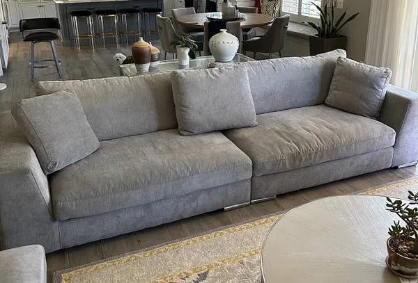 Queen Bed Only by Ashley Furniture. Includes headboard and footboard with rails and cross boards. Modern style with micro fiber materials. Easy to clean. Item is in great condition with minimal wear. Creamish Gray color. Call or text me, if interested in seeing it. Thanks