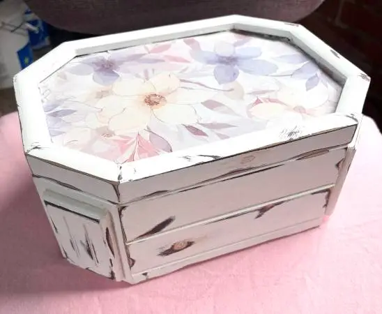 Just finish this wooden floral distress distress jewelry box it’s for sale asking price $20.00. Must pick-up and cash only. Message me for address