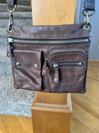 This leather bag has been used less than five times and is in excellent condition. No sign that it has ever been used. Super functional and it looks great! Versatile brown color. Size: 11inches x 9 inches $25 cash No cash apps Local pickup only (Midtown Atlanta or Norcross, GA) Text or call 404.512.6955