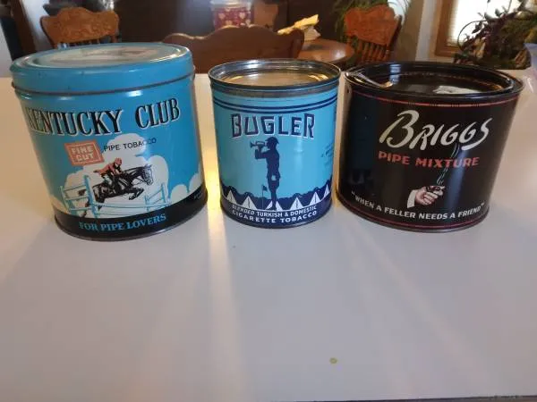 I have 3 old tobacco tins. They are in good condition. All have lids. $10.00 each. I can ship if you pay postage. I will respond to phone calls only. 816-719-9909 Marvin