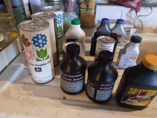 Several cans and bottles of various kinds of 2 cycle oil. 316 oz cans of John Deere 2 cycle oil, I think there are 68 oz bottles and several smaller containers. All are unopened. $10.00 for everything in picture. I will respond to calls only. 816-719-9909 Marvin