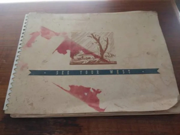 I have a booklet of prints of mostly the America West. There are 20 prints. Most are not attached to the spiral binder. The condition is as you see by the pictures. A couple have small issues with the bordering hard board backing. The book and border pages are 16 by 111/2. There is a picture of Franklyn Roosevelt that looks like it came with the booklet. I will include it if I havent sold it separately. I can mail if you pay postage. $25.00 for all Calls only 816-719-9909 Marvin
