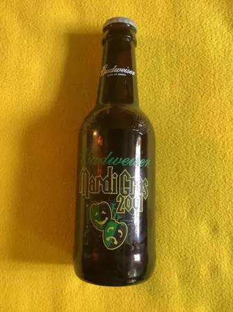 I have for sale 1 Vintage 15 in Budweiser Glass Bottle. This is all glass with plastic cap. This says Budweiser King of Beers and Budweiser Mardi-Gras 2001. If interested please call me at 160-836-1825. Thank you for looking. $10