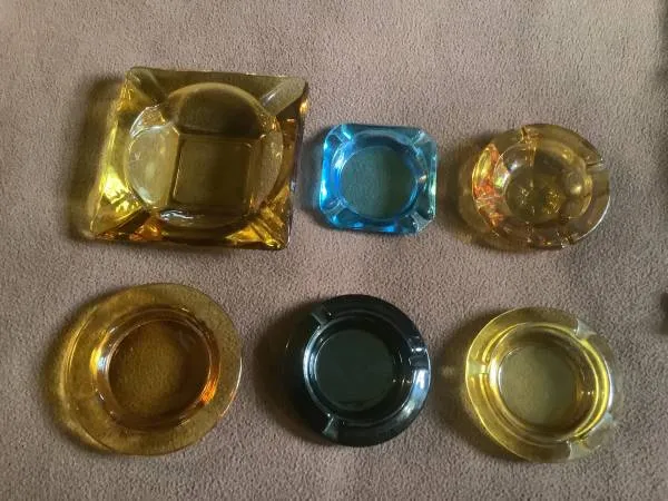 I have for sale 6 Vintage Glass Ashtray’s. I have 4 Amber Glass 1 s, 1 Blue, and 1 Black. All are in good used conditions. If interested please call me at 160-836-1825. Thank you for looking. $40 for all 6.