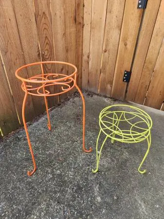 This is a PAIR of Freshly Painted Metal Plant Stands and They are Both in Excellent Condition. The Taller 1 is a Vibrant Orange and the Shorter 1 is Bright Yellow and The Stands are Both Sturdy, Solid, and Level. They Have Nice Decorative Detailing and Will Compliment Any OutdoorOr IndoorSpace. Super Cute and the Dimensions are as Follows: The Taller Orange is 11 Across and it Stands 21 Tall. The Yellow Shorter 1 is 9.5 Across and Stands 13 Tall. Sold As a PAIR ONLY-First CASH Takes These and Price is FIRM. We are Always a CLEAN, Smoke FREE Environment! These Are Both Freshly Painted with Multiple Coats and in Unused Condition. I Have Included Multiple Images, In Excellent Lighting, From All Angles, So You Can Clearly See the Metal Plant Stands. Better Yet, Come See It In Person Today! To View/Purchase Contact Sara @ 541-610-4633 OR Isaiah@ 541-848-8144. Call/TEXT or email are All Good with TEXT Being Preferred. We are Centrally Located in East PortlandMill ParkJust 5 Minutes East of I 205 Freeway. Pick Up is Simple and We are Very Easy to Coordinate with. These Brightly Colored Plant Stands Will Elevate Your Plants in the Patio or Yard and are Priced to Move! SOLD AS A PAIR-SORRY NO TRADES/HOLDS, SERIOUS INQUIRIES WHO INTEND TO FOLLOW THROUGH, LOCAL, IN PERSON, CASH ONLY SALES PLEASE!!!