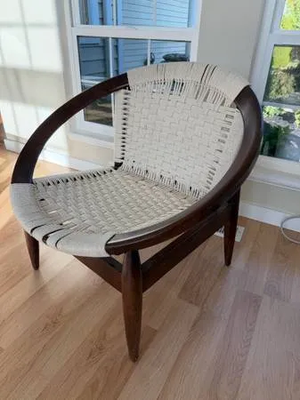 Kareth Barrel Accent Chair – $1,177 Retail Stylish mid-century modern accent chair with solid wood frame and handwoven cotton rope seat. Sturdy, comfortable, and a statement piece for any room. Texts only 206-383-9552 thanks.