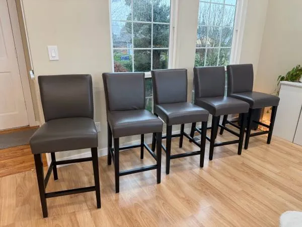 Like new crate and barrel stools measurements listed in photos! No damages no scratches, leather like new! Originally $2,700 for 5 chairs. 5 chairs available! Prefer to sell all together. $350 eachminimum purchase of 2 All together for $1,200 Texts only 206-383-9552 thanks!