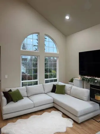 Gorgeous West Elm Haven Sectional in the highly sought-after Oyster fabric. Condition is like new — absolutely no stains, no visible wear. ✨ Retail Price: $4,500 ✨ From a smoke-free & pet-free home ✨ Breaks into 2 pieces for easy moving ✨ Measurements shown in photos ✨ You won’t find another in this condition! ✨ Delivery available ➕ Add-On Option: 3-piece CB 2 nesting tables — originally $700 — can be included for just $150 extra. This sectional is incredibly comfortable, modern, and perfect for any home. Priced to sell — message if interested! Texts only 206-383-9552 thanks!