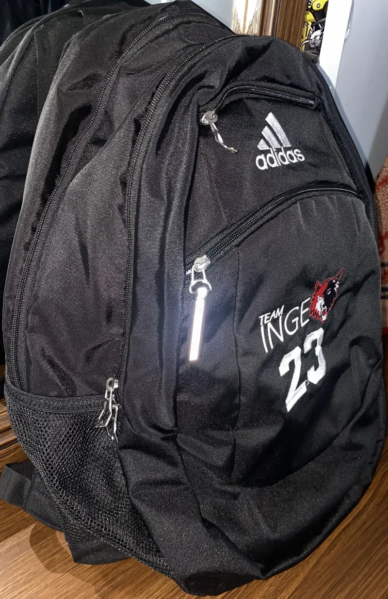 Why spend $50+ on a basic bag? Snag this Adidas premium sports backpack today! Embroidered with Team Inge #23 unique, durable, and roomy for gym or class. Priced to go, grab it before it’s gone!