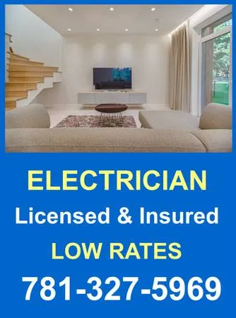 Hi, I am a licensed and insured Electrician with over 20 years of experience. I do all things electrical and can help you with any electricians work you need d 1. Call me at 781-327-5969 - UPGRADE YOUR OLD ELECTRICAL PANEL - Recessed Lighting - Ceiling Fans - Subpanel installation - 220 v dedicated circuits - Kitchen , Bath and Basement Wiring - Running of computer and telephone wiring - Generator Transfer Switch FREE ESTIMATES Call me today at 781-327-5969 I service the following areas: Danvers Electrician Lynn Electrician Lynnfield Electrician Malden Electrician Melrose Electrician Middleton Electrician North Reading Electrician Peabody Electrician Reading Electrician Salem Electrician Saugus Electrician St 1 ham Electrician Swampscott Electrician Wakefield Electrician