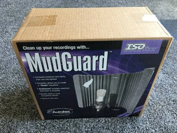 Auralex Acoustics Audio MudGuard for Studio Microphone Isolation Shield. Brings clarity to a microphone, Eliminates/filters external noise, Studiofoam construction, Mounts to most microphone stands, ISO Series, 16 x 14 x 10, Thread knob, 3 Extension Tue, Flat washers, Star Nut, Thread Adaptor, Does not include microphone or stand, Smoke-free, pet-free home. $75 cash. Meet at the NW corner of Costco parking lot. Call or text only 406-298-9699. No soliciting please. See my mics listed under more ads by this user !