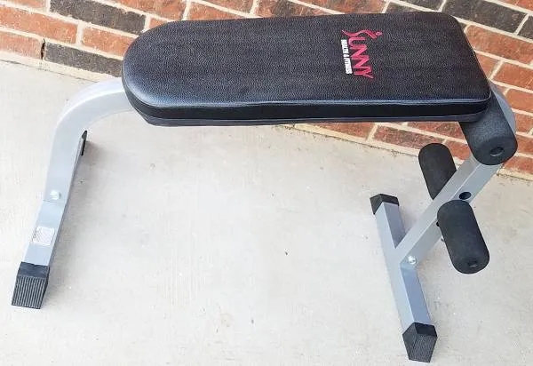 Sunny Health & Fitness heavy duty sit up bench model SF-BH 6502. Slanted sit-up bench strengthens abs by doing sit-ups from a low angle while hooking feet under a sturdy, padded support. Can hold w 8 s behind head for even more resistance. Can also do other exercises on it. As seen in photos, there are 3 adjustable leg settings to hook your feet under. Position can be changed quickly and easily. Sturdy, clean, excellent condition. Text or call 682-503-1757 or reply by email.