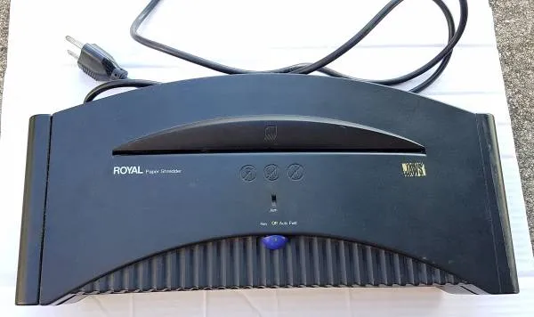 Jaws paper shredder by Royal in good condition. Automatic mode is convenient because it detects when you put in paper, so you can shred right away when you open your mail without having to turn it on or off. Left side extends out to the width of your waste basket. Text or call 682-503-1757 or reply by email.