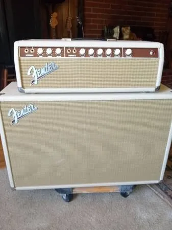 1965 Fender Showman ...AB 763 circuit..... customized by Jimmie D. Webb, Jimmie modded and built amps for some of the best preformers around , he ran a shop in Antioch CA for many years he passed away in the mid 1990 s, he converted the speaker cabinet from a 115 to a 212 and did the head and cabinet with black grill cloth and white piping, the ab 763 circuit is original ,he cleaned up the wire dress, the first stage filter caps have been beefed up from 70 uf to 100 uf the other comp 1 nt values are stock, The Amplifier has been recently fully servicedKendrick Educated techand has metered and matched NOS resistors, Sprague bypass and Filter caps , original coupling caps, original Transformers , Original pots , Knobs,Switchs, Tube Sockets and cabinet hardware , original setback Legs and fender speaker cable ,RCA USA Made NOS 6 L 6 gc Power Matched side getter black plate output tubes,people call these the holly grail of soundBlack plate military spec near perfectly plate matched USA made AT 7 phase inverter tube, RCA 12 ax 7 a vibrato/ tremolo tube and the preamp tubes are 7025 RCA USA Made tubes, Matching original cab with Altec 4178 H 12 inch Speakers in great condition and has casters, original tolex in great condition for a 1965 amplifier, this amp will continue to go up in value and its a real piece of music history , plus sounds incredible, foot switch included.....CL Email or TEXT 530-301-8701...... CASH ONLY IN PERSON...... POST WILL BE REMOVED WHEN THE AMPLIFIER IS SOLD......... THANKS