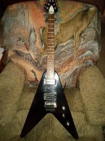 Vintage Lotus Flying V , Kahler USA made tremolo bridge and string lock, bridge pickup replaced original pickup included, have not been able to find out any info , its Similar to the LS 1000 ,but Gibson style arrow headstock leads me to think its pre lawsuit , really nice fast action , very Gibson like ,bolt on neck ,frets in good shape, original tuners , after market pots, sg style knobs, if its pre lawsuit its MIJ, if later mik , definitely not a common guitar Ive never seen another 1 like it..... Sorry No Case......CL email or TEXT 530-301-8701....... CASH IN PERSON....... POST WILL BE REMOVED WHEN SOLD..... THANKS