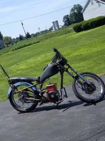 Frankenstein Motorcycle with 5 hp runs no title $400 cash *Black Gas tank like new $40 *Black seat $40 * Dirt Bike seat $75 * Exhaust pipe $50* Half Helmets $40 each cash price call or call 193-756-4726 located in Brookville oh thanks
