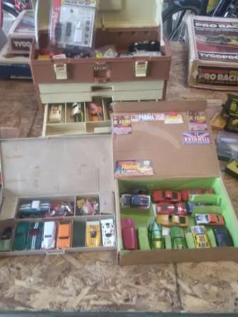 Have 165 Slot cars Ho scale prices starting at $20 each and up lots xtra parts and bodys and track dont have pictures of everything also have 20 Plastic Model Car Kits not built $30 each also have 400 Hot wheels some loose and most still in package different prices Dont ask me what I will take for everything come look well talk cash dont have pictures of everything located in Brookville oh call or call 193-756-4726 located in Brookville oh oh thanks