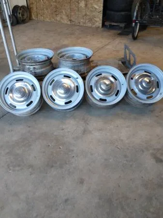 Set 4 Chevy Rally wheels 15 x 7 with caps and rings $400 ** Set 4 Chevy Rally wheels 15 x 7 with caps no Rings $350 ** Pair 2 Chevy Rally wheels 15 x 7 with dis brake caps $200 ** Pair Corvette Rally 15 x 8 with like new Hoosier Slicks 28 x 9 x 15 with 41/2 and 43/4 bolt patterns $350 both ** Have 6 Original Corvette Rally Deep Dish trim rings 313 Deep your choice $25 esch ** Set 414 trim rings 21/2 deeep $60 set cash prices call or call 193-756-4726 located in Brookville oh