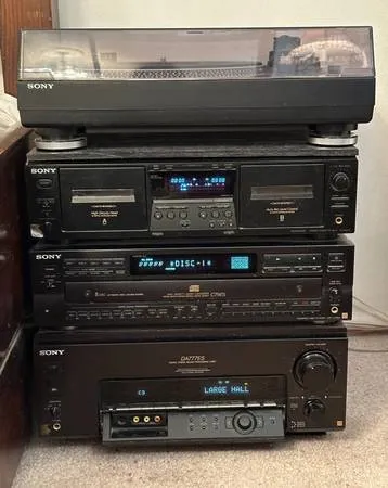 Selling all together only as a stereo system. Vintage Sony ES or Elevated Series Flagship Stereo system. Included are: Sony STR-DA777ES receiver, Sony CDP-C70ES, 5 CD changer, Sony TC-WE475 double cassette deck, Sony PS-LX350H turntable record player, Sony RM-D706 remote control unit and Sony RM-TP502 remote commander. These units are in amazing cosmetic shape, what you see in pics are camera effects and dust that shines in bright light. Receiver alone weights a whopping 55 pounds and it’s a 5.1, and 120 W watts per channel surround receiver, which was the flagship of Sony when it was built this unit has been very seldom used and record player and CD player and receiver they all work, but I don’t have cassette tapes to test the cassette deck. The system puts out amazing sound with a lot of base and dynamics. No speakers are included, but you’re more than welcome to test this system with the speakers that I have. Selling all together only. $750. Pick up in Tempe Phone calls only please, no texts If you email, please include your phone number and I will call you, due to scammers, emails without phone number most likely wont get responded to.