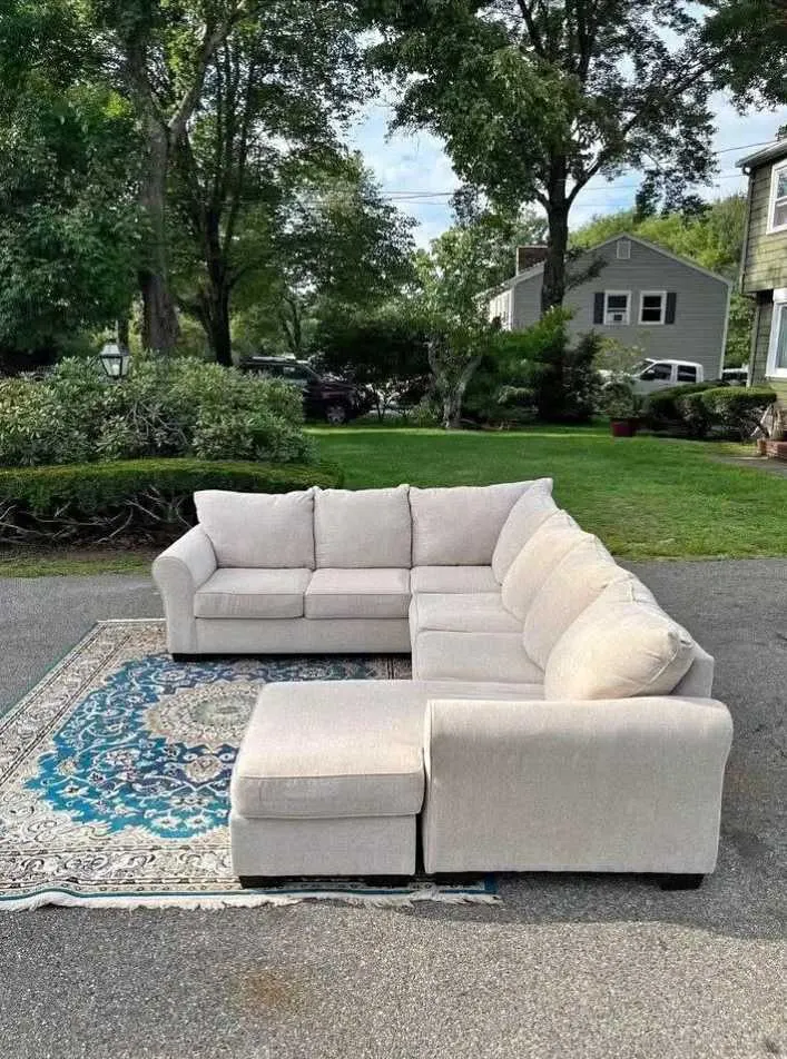 Looking for a comfy, modern sectional? This light beige L‑shaped couch is super comfortable and fits great in a living room, family room, or basement hangout. - Condition: Gently used, no major stains, rips, or sagging - Color: Light beige/cream – easy to match with any décor - Style: L‑shaped sectional with chaise - Seats: 4–5 adults comfortably - From a smoke‑free, pet‑free home (edit if not true) Perfect for movie nights, guests, or just stretching out with a book.