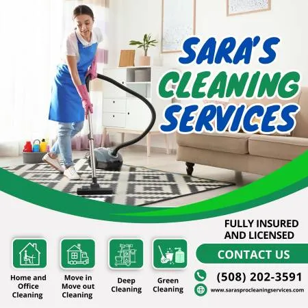 Saras Cleaning Services 🌿 Eco-Friendly & Non-Toxic Products 🚫 100 Satisfaction Guaranteed 🚨 Emergency Services within 3 hours 💼 Woman-Owned & Operated 🔒 Insured & Verified Staff & English Speaking Residential & Commercial Cleaning Services Offered: •Basic Cleaning •Deep Cleaning •Move In/Out Cleaning •Post-Event •Construction Cleaning •Janitorial & Maid Services Add-Ons : Interior Fridge, Oven, & Window Cleaning WHY CHOOSE SARAS CLEANING SERVICES FOR YOUR CLEANING NEEDS? Saras Cleaning Services stands out as a trusted and reliable choice in the Cleaning Service in Boston. Our commitment to excellence and extensive cleaning expertise makes us a preferred solution for many in the city. QUALITY YOU CAN TRUST: Our team delivers top-notch services using the best cleaning tools and solutions. AFFORDABLE & TRANSPARENT PRICING: No hidden extras. Transparent pricing ensures no surprises. SAFETY FIRST: All team members are background checked and insured for your peace of mind. EASY ONLINE BOOKING: Schedule your cleaning quickly and conveniently. Call Today : 508-202-3591