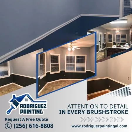 We do Residential Interior & Exterior Painting. I have 17 years of experiencie. I do a good job of painting for you. And I guarantee you will be sastified and happy with my work. I am a good Christian, I go to church with my family. 1 Corinthians 16:14 Let all your things be d 1 with love. Services include: Interior Painting & Exterior Painting. Walls, Ceiling, Trim, Doors, Cabinets, Stain, Drywall, Repair Cracks, Water Damage, Patch Hole, Stain Deck, Porch, And Fence. I do pressure Washing Too. Call at. 256-616-8808 if I do not answer. Leave a message or text and I will call you back. Thank you so much for your time! My Name is Luis Rodriguez. Numbers 6:24 God bless and keep you.!! God bless you every 1 Free Estimates: We offer free, no-obligation estimates for our painting services. Contact us today to schedule a consultation, and we’ll provide an accurate assessment and transparent pricing for your project. Se habla Español Check my Website:https://rodriguezpaintingal.com Licensed & Insured