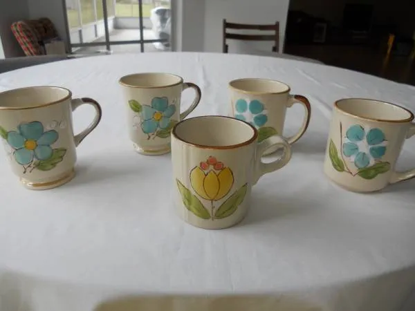 If you are reading this then the item is still available. Please call Steve at 727-254-0280. Nice and polished inside so theyre easy to clean. All 5 for $10. These cant help but make you smile in the morning! They have no visible defects. cup saucer cups saucers keywords: porcelain porselain porselane porselin porcelin