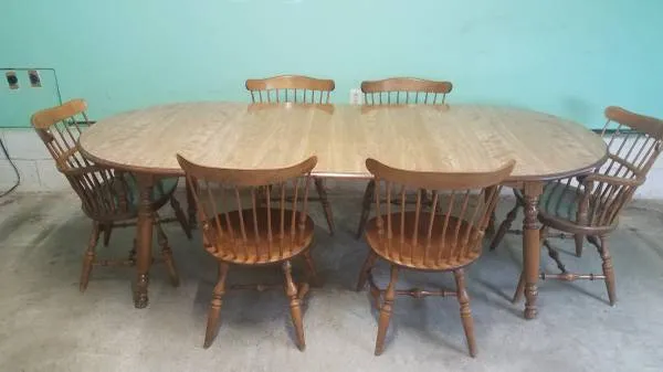 Excellent Shape! Tiger Maple Dining Set, 1 of the true exotic domestics woods Expandable Dining Table with 3111/2 Extending Leafs. Table is 60 without Leafs, Extends out to 94. 6 Chairs, 2 Arm Chairs and 4 Dining Chairs. Manufactured many decades ago by Nichols & St 1 NYsince 1762 was $1500 now $1200 No digital payments - Cash only Please call Frank at 209-324-1434. Thank you
