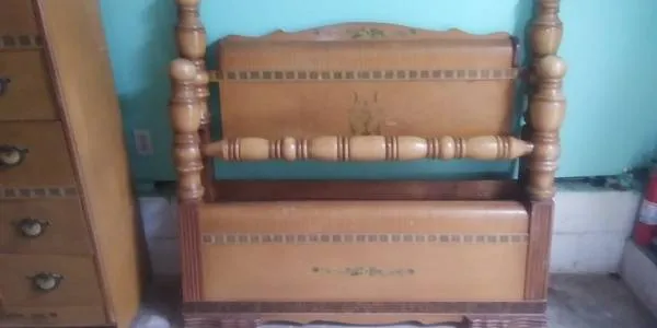 1950 s Cannonball Style Bed Frame with Wooden Rails Matching 1950 s Waterfall Vanity with Mirror, both for $150 now $100 No digital payments -Cash Only Please call Frank at 209-324-1434