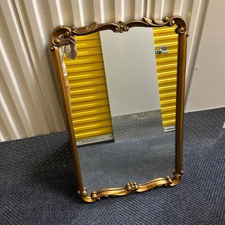 COOPER CLASSICS Toulouse Gilded Wall Mirror Details: Ornate wall mirror with an antiqued gold frame, featuring corner embellishments and delicate scrollwork inspired by 18th-century French and Italian design. Sweeping curves and symmetrical flourishes. Balanced, timeless traditional look that works horizontally or vertically in entryways and bathrooms. Material: polyurethane, glass Condition: Very good condition with minor chips in the gold on the corners, easily restored with a bit of Rub & Buff – see photos. Measurements: Width 24, Height 36, Depth 1 Weight: 18Lbs Notes: Pickup is from our retail studio in Gowanus Brooklyn. Delivery is also an option for an additional fee.