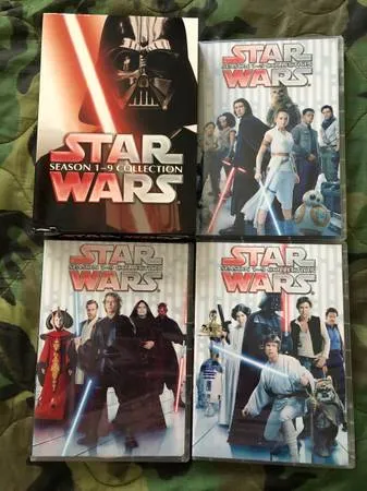 Used. Discs in good, playable condition. All the Star Wars movies made since 1977. Contact 812-606-0572.