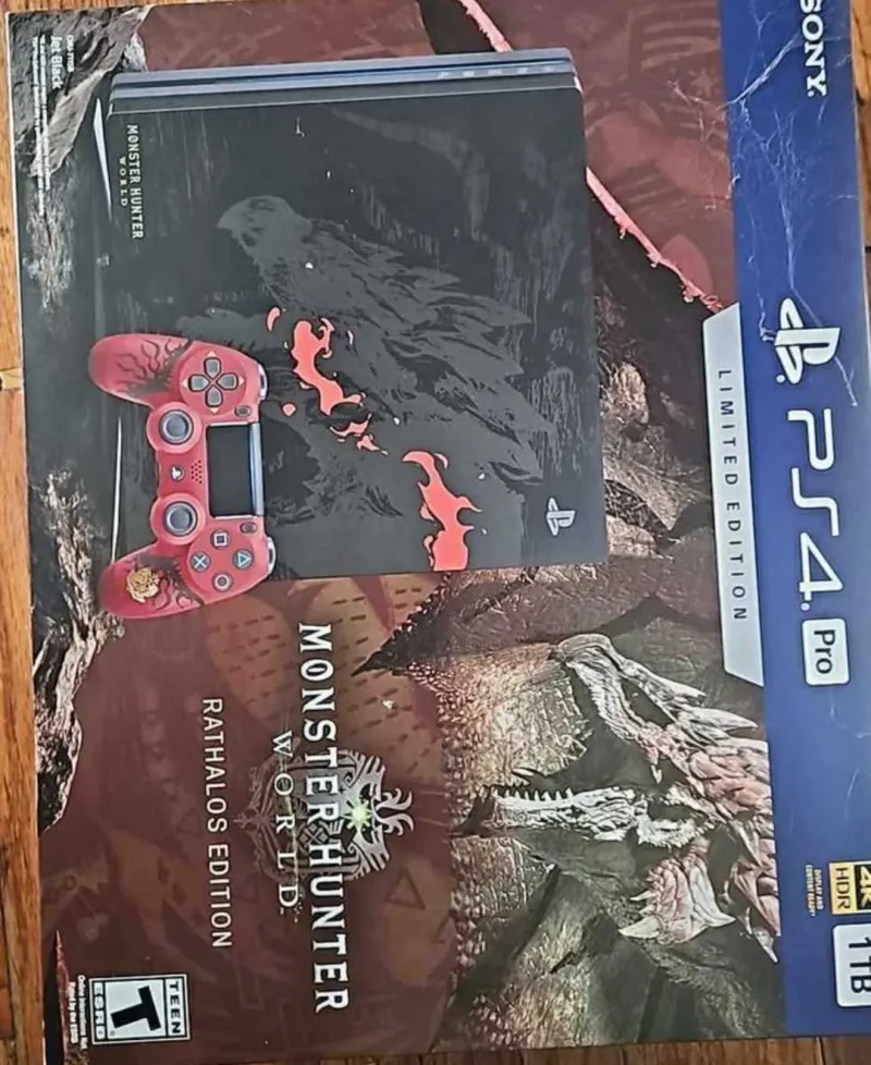 I'm selling a bundle consisting of Monster Hunter Rathalos PS4 with World and Iceborn collection, Kingdom Hearts games, and Jump Force game collection. The bundle also includes a PS4 carrying case, extra Monster Hunter controller, and a standing cooling fan.