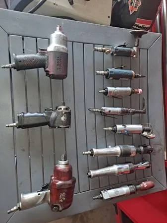 Cleaning out my toolbox I have a large lot of air pneumatic tools Blue Point Snap-on Mac macro Ingersoll and Rand everything works perfect everything you see in the picture for 500 cash if you see something you want send me a text and we will work something out my phone number is 619-277-7451 thanks for looking Pat
