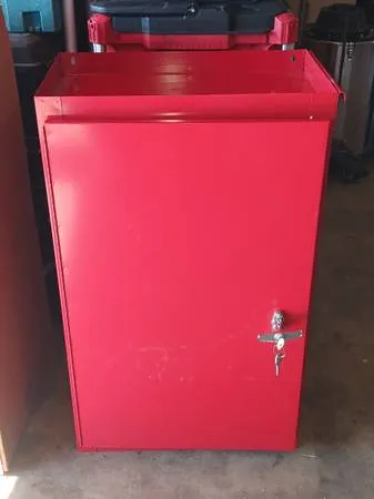 Brand new red locking side box for sale $60 has keys never used Dimensions or 17 by 11 x 29 for more information text Pat at 619-277-7451 thanks for looking