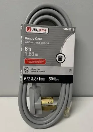 Hyper Tough 6-Foot 3-Wire Range Cord, 50 Amps, Grey, Right-angle Plug, 125/250 V, 50 A https://www.walmart.com/ip/Hyper-Tough-6-Foot-3-Wire-Range-Cord-50-Amps-White/520-624-3204 wl 13=5129 amp;selectedSellerId=0 amp;wmlspartner=wlpa