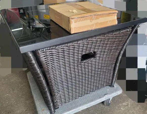 Blue Rhino Gas Fire Pit Table Black Polished Glass Mantel/Handcrafted Resin Wicker 50000 BTU Liquid Propane 32 Wx 23 Hx 32 D*Lava Rocks Incl. **New**Assembled** Reply to post or call 973-351-4287 Tuesday thru Saturday 10 am-5 pm Serious Buyers Please!!! cashncarryonly,, scratchnscuffsales,, Guarantee 2 Work “”Se Habla Español“”