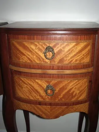 REDUCED - Lovely pair of beautiful antique tables made of mahogany walnut and possibly birch. I think early 1900 s- been in my family for at least 60 years. Beautiful delicate with old brass accents. This is not found in crate n barrel west elm ikea - this is solid real wood - these are heirloom pieces to be passed down from 1 generation to another. Land 602-334-1228 or text 602-317-3724