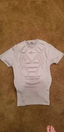This Sports shirt is heavily padded and is great for multiple sports where protection is needed including baseball and football. It is lightly used and is a youth XXL. 630-688-6367 Compression fit protective undershirt is 100 polyesterPadded protection with soft sides for comfortProtects shoulders, chest, abdomen and sidesDeveloped to increase shock absorbencyStretch fabric for greater freedom of movementNon stretch stationary pads for maximum protecti 1 ngineered with Bio-Dri moisture wicking technology