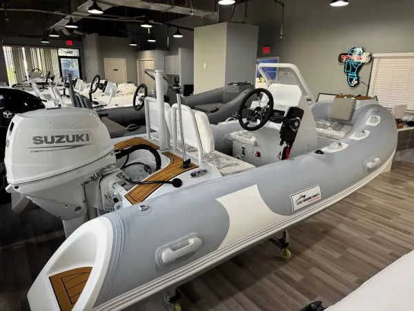 Brand new 2025 East marine 360 Elite 12 Aluminum Yacht Tenderdinghywith 30 hp outboard electric start and power trim. Length 12.1 ft Beam 6 ft W 8470 lbs with 25 Hp outboard Standard Features: • Rockford fosgate sound system • Navigation lights and blue courtesy lights • Bow anchor roller • Custom Diamond Stitch Cushions •EVA foam flooring • rear sugar scoop steps •Auto/manual bilge pump • 6 gallon fuel tank • Air pump & patch repair kit • 2 Storage Compartments Bimini top available for $499.00 Delivery available message for a quote 954-778-1663 Inflatable boat Dinghy rib yachttender Hypalon Godiac Eastmarine Zodiac Highfield boston whaler northstar brig logic tender inflatable yacht williams jet tender outboard walker bay zodiac motor yacht