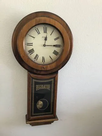 Regulator wall clock. Battery operated. Runs good. I’m asking $30.00 dollars OBO. It is approximately 36 inches tall, 18 inches wide and about 5 inches deep. My name is Rich and I can be reached at 209-559-5388. If you have any questions please feel free to call. Text or call only. I will not respond to emails. If the post is still up then I still have the clock. Thanks for viewing and have a great day. 😎