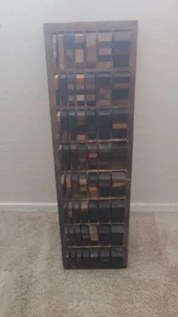 Antique Hamilton Letterpress Typeset Furniture Cabinet thats Full of Furniture Cabinet is approx. 31 inches tall x. 9.5 inches wide x 10.25 inches deep on the bottom. Can still be used for printing and makes a wonderful MCM decoration. On the back it has remnants of the original Hamilton label Text 623-203-6152. cash Can meet at the Quick Trip on 67 th Ave and Happy Valley Rd. letter press printers equipment blocks type setting oak industrial Antique Hamilton Printers C...