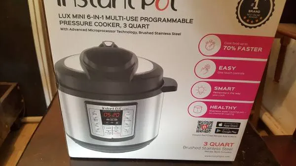 Brand new never used Instant Pot Lux pressure cooker with original packaging and manuals. Asking $25. Call or text 989-259-8573.