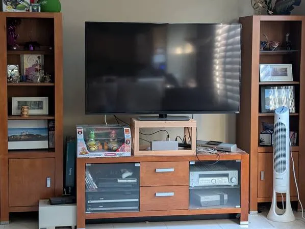 Selling a TV/Media Entertainment Center Console bought from a furniture store a couple years back. It is not the lightw 8/cheap Ikea furniture. It comes in 4 pieces: 1. Left Shelf columnglass shelf lights up 2. Right Shelf columnglass shelf lights up 3. TV Stand Base 4. Rear wall to allow mounting of TV.Can be used without it, but should accept TV up to 60 NOTE: Listing only includes the furniture. DOES NOT include TV, decorations, toy, etc.. visible in the picture. Buyer will need to arrange transport. I do not have any vehicles to transport it. Best offer will be considered. Please text at 949-829-1243 or use the built in email/chat system.