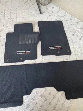 All Nissan Carpeted Floor Mats are made of high-quality material and are custom-fit Features PRO-4 X logo Drivers mat secures with a grommet hole/positioning hook system Floor mat backing is designed to help position the mat in place Set includes drivers mat, front-passengers mat and rear floor mat. Call or text Jim @ 651-210-9088. If to far to go we can discuss a closer location.