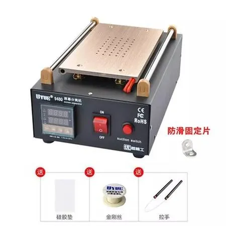 Persder 948 Q Separator 191-884-1513 text or call Iphone Samsung NEW Fixing a damaged cell phone or tablet can sometimes be a difficult challenge. Particularly if you are trying to separate the out glass or digitizer from the LCD screen assembly. Separating these parts often requires you to heat up the adhesive to pull the glass from the LCD screens. If this isn’t d 1 correctly and with the correct temperature you can risk further damaging the LCD and the phone. That is where this machine steps in! With the included holders you can heat the screen to the desired temperature. Then you can use the included Molybdenum cutting wire to safely remove the screen. This is a must have for Repair shops or people who intend on doing a lot of phone repairs. It will not only make it much easier to complete the repairs but it will also save lots of time! Features: 1. Allow you to easily separate glass from LCD 2. High quality aluminum alloy heating plate 3. Fast heating, even heat distribution and convenient temperature control 4. Built-in auto sensor, clear and accurate temperature display 5. CPU controlled temperature, accurate and constant 6. Offer 2 temperature setting modes: regular setting and real-time setting 7. Heating ring is easy to install 8. Suitable for 8 cellphone/tablet LCD screens