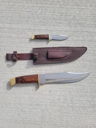 Timber Rattler 15 over all length TR 90 surgical steel blade includes smaller version and sheath Asking $120.00 OBO Also have Rare Custom Made Damascus Steel Knife Lighting Bolt Blade 141/2 over all length, 93/4 blade length Asking $160.00 OBO Call or text Chris 989-213-3543 Can meet by appointment.