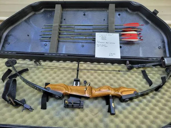 Darton Model WH 55045-60 lb Compound Bow 28-32 draw in Like New condition Includes hard case, quiver release and 5 arrows. Able to show most anytime by appointment call, text or email Chris 989-213-3543 Located 9 miles East of Bay City on M-25 in Quanicassee