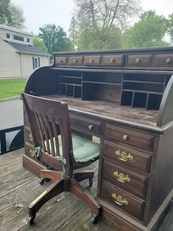 Rolltop Desk with Chair 55 x 28 x 49 $100 Cash Only All proceeds go to the church Pick up only All sales final - no returns - no refunds If interested call Ellen directly at 973-519-1588 to make arrangements